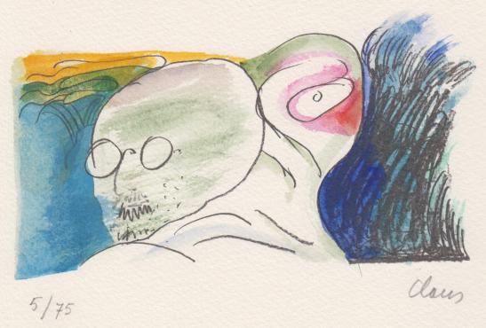 * Eén van de 31 luxe-exemplaren met een originele tekening in gemengde techniek van Claus als stofomslag en een suite van 31 ‘sanguines’: 31 reproducties van tekeningen plus één van die tekeningen (in krijt en aquarel) als origineel, genummerd en gesigneerd.