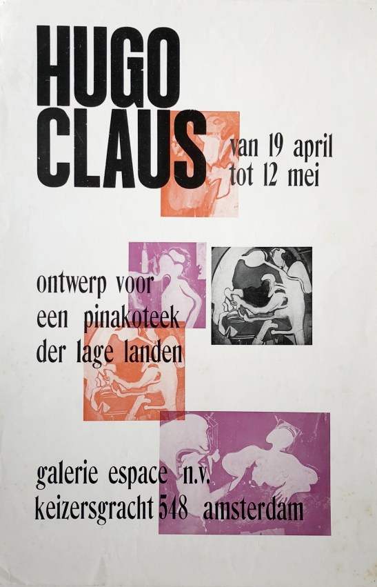 8. CLAUS, Hugo (Affiche voor de tentoonstelling ‘Ontwerp voor een pinakoteek der lage landen’). 48,9 x 32,0 cm. [Ontworpen en gedrukt door Frans de Jong]. Punaisegaatjes in de hoeken.