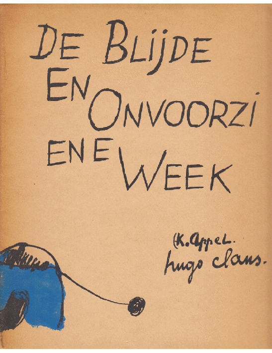 3. CLAUS, Hugo, & Karel APPEL De Blijde en Onvoorziene Week. (Met acht tekeningen van Karel Appel, door hem met de hand ingekleurd). (Paris, Cobra, 1950). 27,4 x 22,3 cm. (16) p. in omslag. Gedrukt in een oplage van 200 genummerde en door dichter en kunstenaar gesigneerde exemplaren. 1e druk. Mooi exemplaar.
