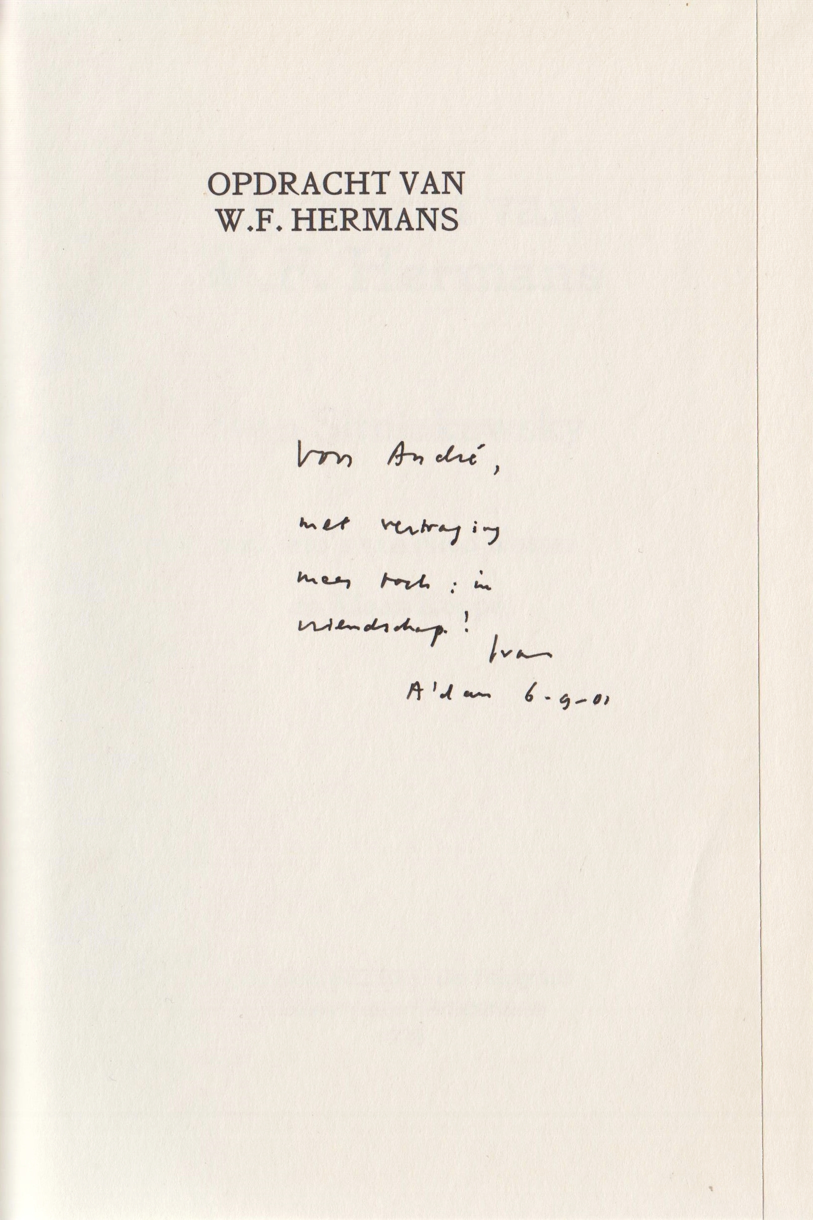 Vestdijks buurman en grootste fan Nol Gregoor zette met potlood zijn naam op het schutblad en maakte een aantekening.
