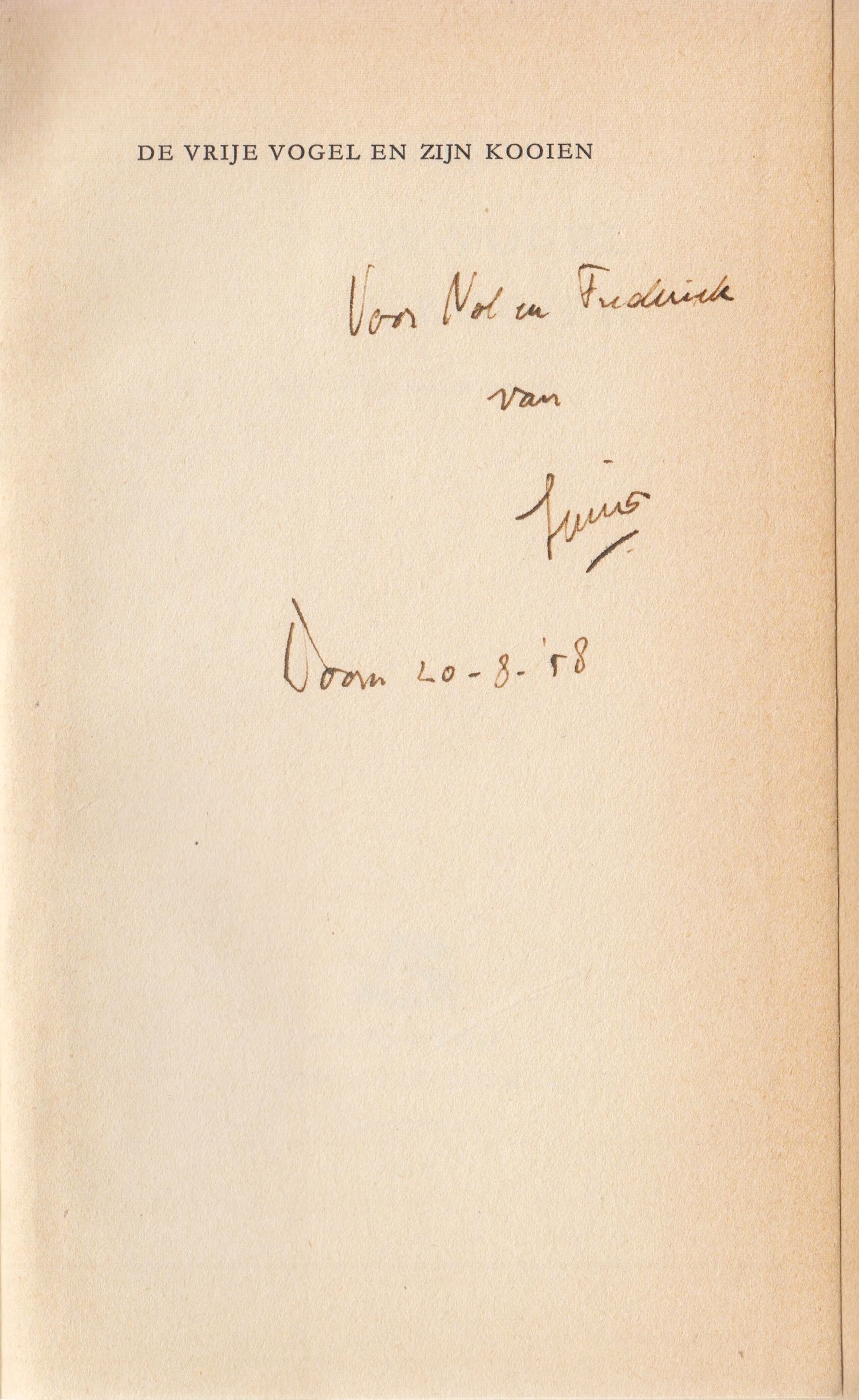 * Exemplaar met handgeschreven, gesigneerde opdracht van de auteur op het schutblad: ‘Voor Nol [Gregoor]/ Simon/ Doorn 6-1-’62’.