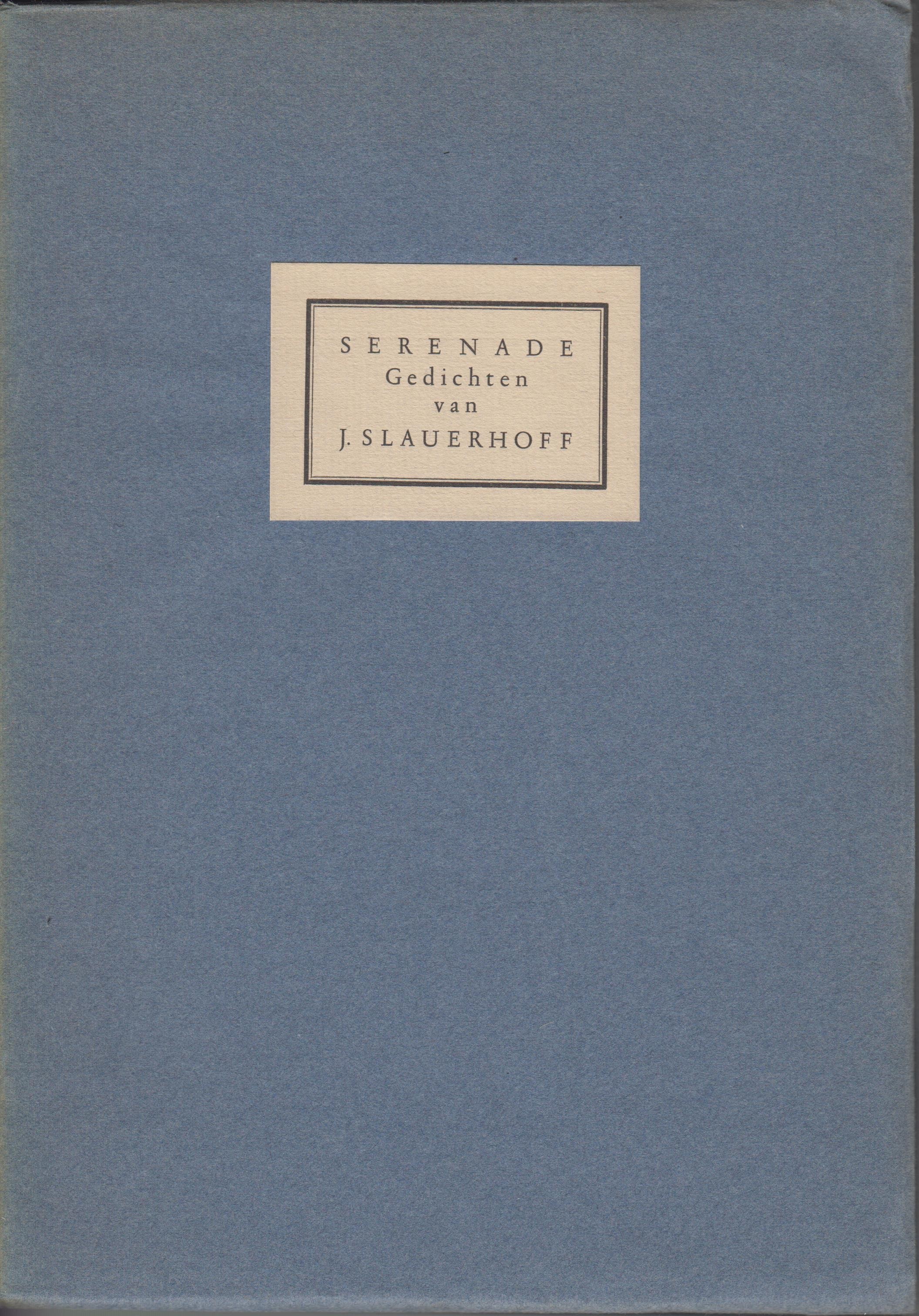 27. SLAUERHOFF, J. Serenade. Gedichten. Maastricht/ Brussel, The Halcyon Press, 1930. Ingenaaid met omslag. (4), 40 p. Gezet uit de Romanée van Van Krimpen in een oplage van 310 genummerde exemplaren. 1e druk. Rond rug licht verschoten, maar een goed exemplaar.