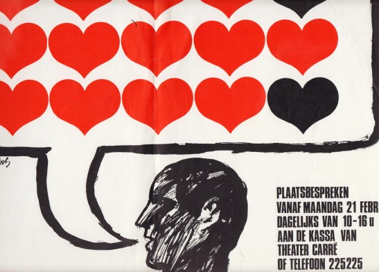 * Schaarse poster voor deze baanbrekende poëzieavond van Vinkenoog met optredens (‘in levende lijve’) van Campert, Claus, Deelder, Hanlo, Nooteboom, Reve, etc. etc. ‘Theater Carré. Maandag 28 feb 1966. Aanvang 20 u precies’.