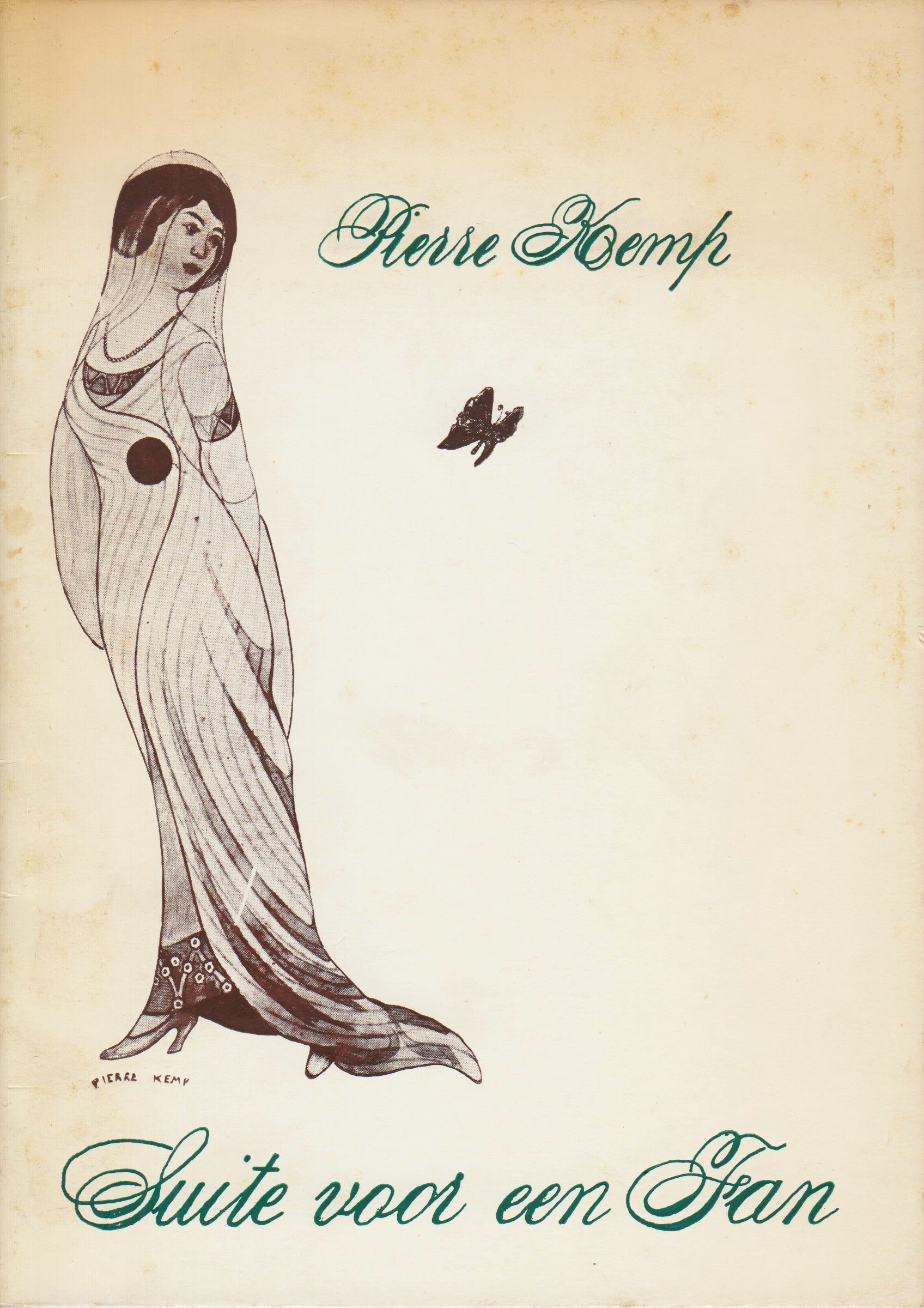 15. KEMP, Pierre Suite voor een fan. (Negen Badineries voor één Mezzo-Sopraan). Bloemendaal, Arcadia Pers, 1964. Geniet. (32) p. Omslagtekening van Pierre Kemp. Met ingeplakte foto (prentbriefkaart). Gedrukt in een oplage van 75 genummerde en gesigneerde exemplaren. 1e druk.