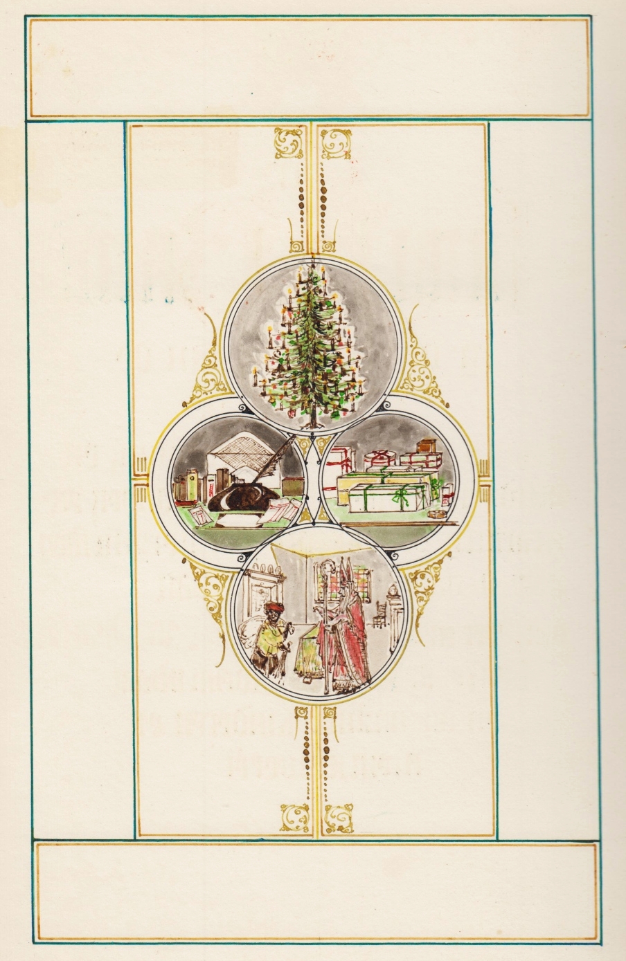 * Luitingh (1879-1949) was in het dagelijks leven koster van de Bavokerk, maar op verzoek vervaardigde hij prachtige kalligrafieën. Adriaan Stoop (1856-1935) was op Java puissant rijk geworden in de olie; de door hem opgerichte Dordtsche Petroleum Maatschappij werd onderdeel van Koninklijke Olie/ Shell. Hij bewoonde het landhuis De Rijp, waarvan een afbeelding de eerste pagina siert. Piepje en Wimpje zijn musjes, Lulu waarschijnlijk de auteur van het cahier. Ook met tekeningen van een kerstboom, pakjes, correspondentie en Sinterklaas en met fraaigetekende familiewapens. Mooi en aandoenlijk gedenkboek.
