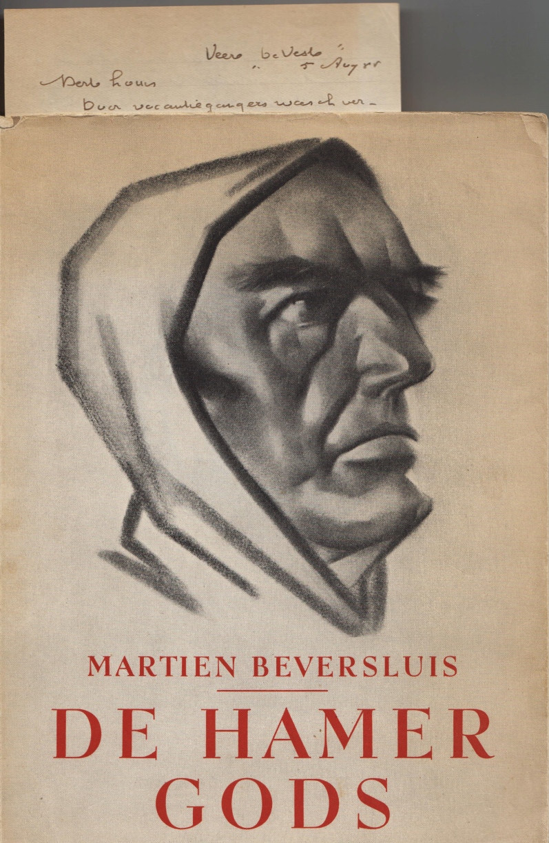 4. BEVERSLUIS, Martien De hamer Gods. Een treurspel in verzen over Savonarola. (Met opdracht en handgeschreven brief). Antwerpen/ Amsterdam, P. Vink, (1952). Ingenaaid met stofomslag (met tekening van Savonarola door Jac. Prince). 140 p. 1e druk.