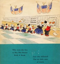 * Met handgeschreven opdracht van Oscar Fabrès en zijn vrouw Alice: ‘Voor onze lieve Chrisje/ New York/ xi.45’. De inleiding vertelt over de oorlogsvlucht van Fabrès naar Amerika. En dat is ook waar het boek over gaat, het eendenpaar Kwik en Kwak vlucht voor de inval van gemene groene eenden die alles kapot maken.