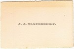 12. SLAUERHOFF, J. Origineel visitekaartje. 6,6 x 10,1 cm. Op de voorzijde in open initialen bedrukt: ‘J.J. Slauerhoff.’. Met scheprand. Deels iets verbruind.