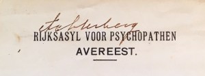 1. ACHTERBERG, Gerrit ‘Geboren 20 Mei 1905, te Neerlangbroek (…)’. Origineel handschrift. 29,0 x 20,5 cm. Eén blad. Op briefpapier van ‘Rijksasyl voor Psychopaten/ Avereest’. Recto en verso. Niet gedateerd [= 1938]. Niet gesigneerd. 62 regels tekst. Met in onbekende hand bovenaan: ‘Achterberg Voor levensbeschrijving’.