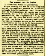 * De op 31 augustus 1898 achttien jaar geworden prinses Wilhelmina aanvaardde op die dag de regering van Nederland. De Renkumse heide bij Oosterbeek was het toneel van een grote parade van het Nederlandse leger ter ere van het nieuwe staatshoofd. Burgemeester Van Toulon van der Koog fungeerde bij de feestelijkheden als gastheer, en zijn beide dochtertjes boden de jeugdige koningin ruikertjes aan (aldus een krantenverslag). Als dank voor zijn glansrol werd Van Toulon van der Koog op 3 november door de Feestcommissie een boek aangeboden, dat uitvoerig beschreven is in het dagblad De Telegraaf van 4 november 1898. Dit is het album! Voorin een welsprekende, fraai gekalligrafeerde loftuiting ‘met een blijmoedigen lach’. De handtekeningen in het boek zijn van notabelen uit de omgeving van Oosterbeek. Inliggend de handgeschreven aantekeningen van de bij de aanbieding van het album gehouden feestrede en een bijbehorend briefje van de secretaris.