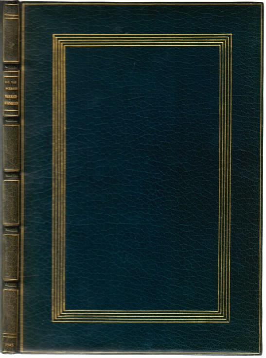 * Aantrekkelijke, subtiele boekbindersband, het donkerbruine marokijn stemmig in zwart bedrukt, de platten overtrokken met vooroorlogs ogend zwart-bruin sierpapier. Van Laar 72.
