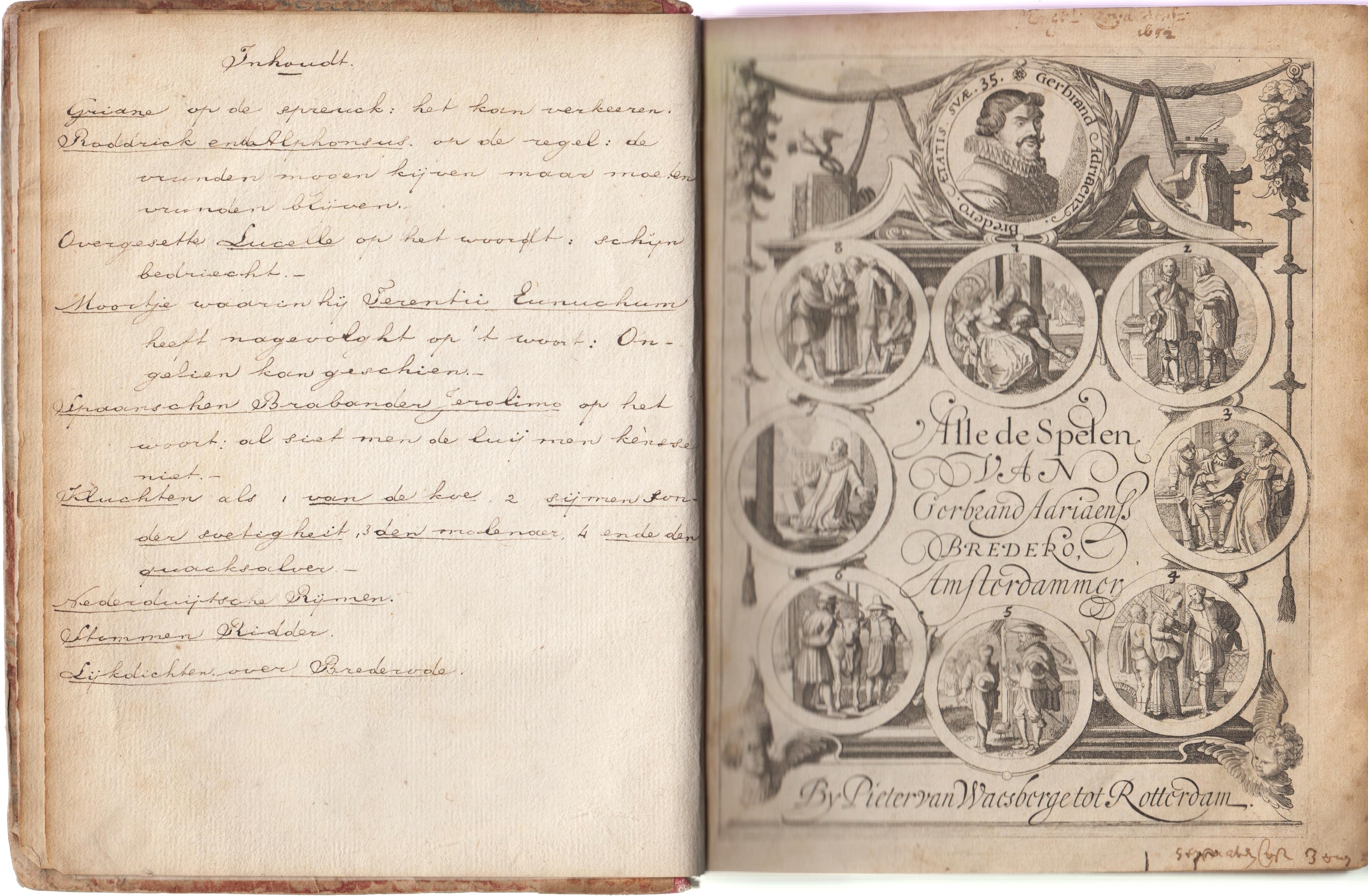Dit is het tweede verzameld werk van Bredero (1585-1618), waarin zijn bekendste stukken (Spaanschen Brabander, Klucht van de koe) zijn opgenomen. Bovendien is dit een van de eerste uitgaven van Pieter van Waesberge(n) (1599-1661), die wel meer roofdrukken op zijn naam heeft staan.