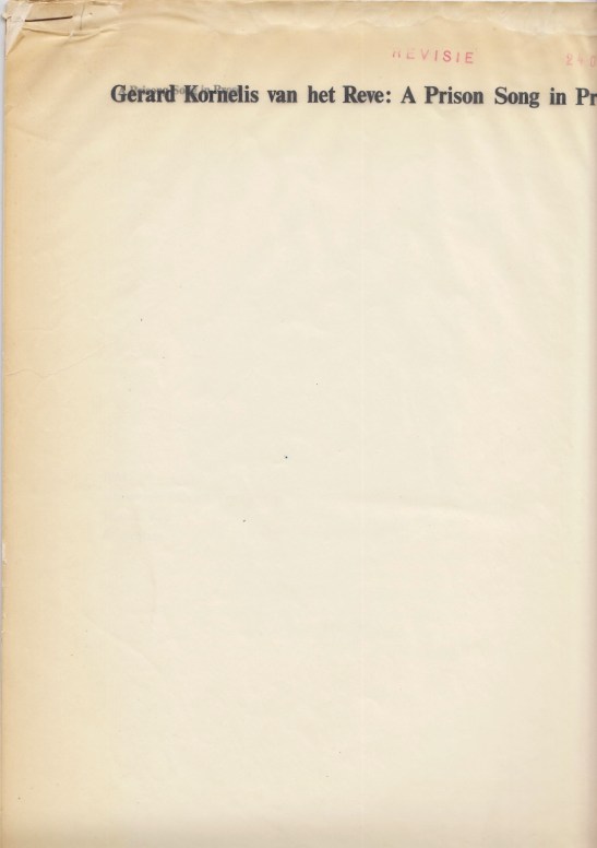 REVE, Gerard A Prison Song in Prose. Unieke collectie: het oorspronkelijke model, proeven en originele foto’s. In linnen overslagdoos met, ingenieus ingeschoven in het deksel, een mooi exemplaar van de uitgave. 36,3 x 27,3 x 3,9 cm.