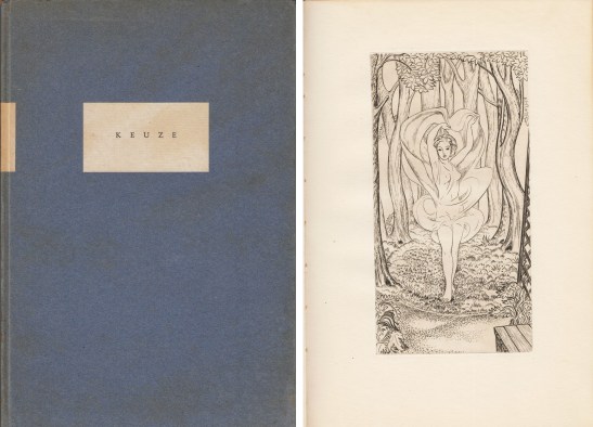 * The copper engraving shows a lilylike dancing girl in a translucent dress in a grove. Opulent book of poems by H.A. Sinclair de Rochemont (1901-1942), who was the founder of the first fascist party of the Netherlands. Cf. Reid A34 (this second edition is not mentioned).