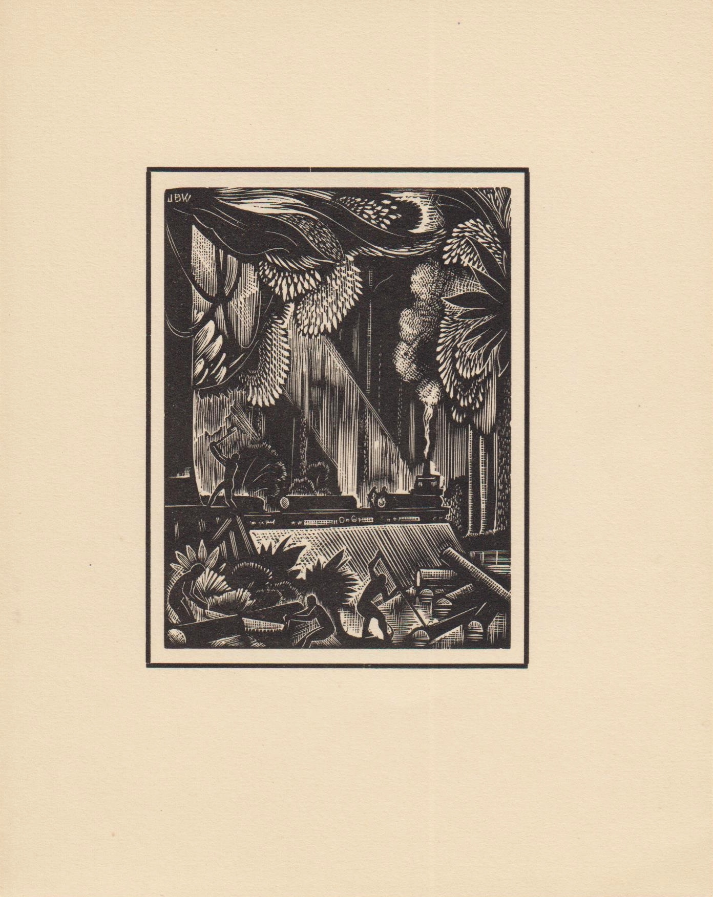 17. BUCKLAND WRIGHT, John Negen houtsneden van J. Buckland Wright voor de N.V. Houtindustrie Picus te Eindhoven. (9 original woodcuts). Eindhoven, N.V. Houtindustrie Picus, [1940]. Original wrappers. (24) p. Printed in 400 numbered copies. 1e druk.