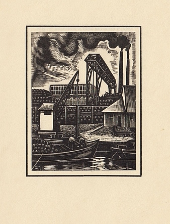 8. BUCKLAND WRIGHT, John Originele houtgravure. (Rijnaak wordt ontladen bij de houtverwerker). Plano, geplakt op karton. Op Keizerlijk Japans papier. 14,6 x 11,0 cm.