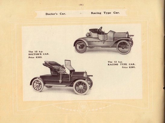 * Met verschillende modellen, o.a. de 8 h.p., 12 h.p. en 16 h.p. Standard Body, Six Seated Landaulette, automobielen met Hood & Screen, de Doctor’s Car en de Racing Type Car. Prijzen van 200-590 pond sterling. Heerlijk vroeg automobielboek.