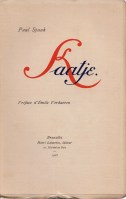 45. SPAAK, Paul Kaatje. Préface d’Émile Verhaeren. (Met handgeschreven, gesigneerde brief van de auteur, gedateerd ’30 Sept. -08′). Brussel, Henri Lamertin, 1908. Ingenaaid. 164 p. Niet afgesneden. 3e druk. Rugje wat gesleten.