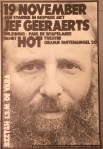 10. (GEERAERTS, Jef) 19 november Jan Starink in gesprek met Jef Geeraerts. Inleiding Paul de Wispelaere. In het HOT Theater Oranje Buitensingel 20. (Grote affiche). Den Haag, Bzztôh, ca. 1980. 59 x 40 cm. Eenzijdig bedrukte affiche in zwart-wit. Gevouwen. Goede conditie.