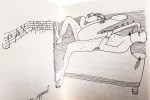 * ‘We zitten in een kamer die MAGRITTE heet, vandaar. en dit is met je aquareldoosje gemaakt van het uitzicht op ons terras, cum piscine, cum jacuzzi, cum cuisine epicurissime’. Geweldig leuk!