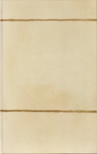 * Naast de luxueuze boekband van goudbruine, ruwe Thaise zijde maakte David Simaleavich van Binderij Phoenix een aantal (elf) extra luxe-exemplaren in heelperkament: de twee horizontale, iets rafelige gouden banden maken deze boekband subtiel opmerkelijk. Een van de mooiste marge-uitgaven, een ingetogen verhaal met Japans ogende ets. Met prospectus.
