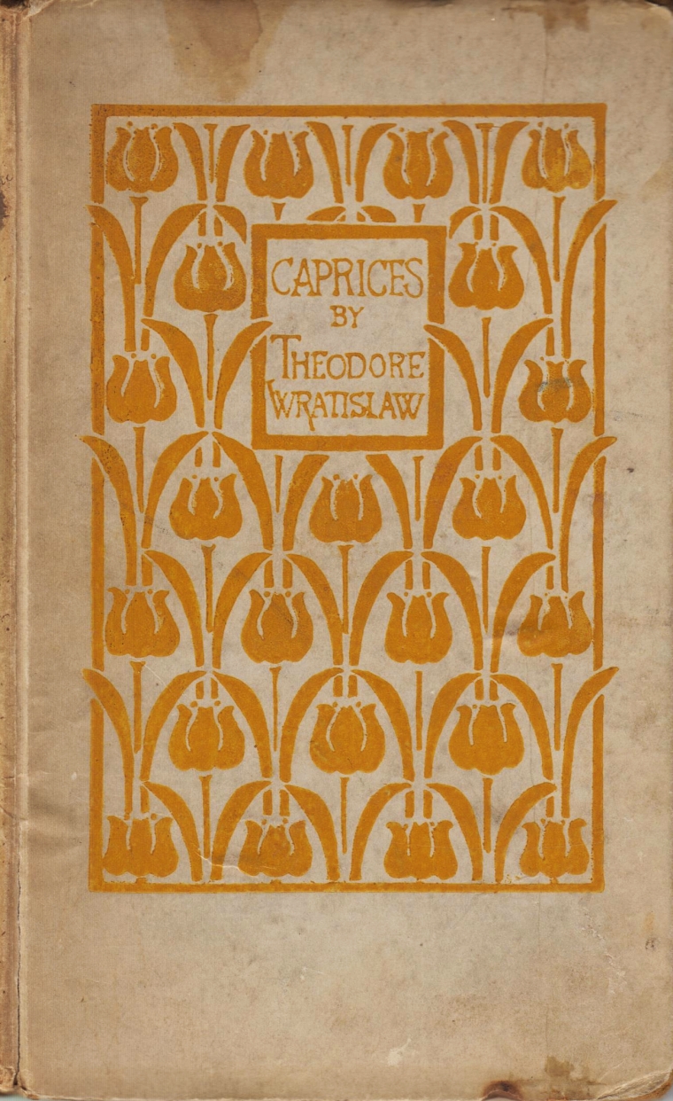 60. WRATISLAW, Theodore Caprices. Poems. London, Gay and Bird, 1893. Original boards. (10), 50 p. Printed in 100 numbered copies on handmade paper. Uncut. Mediocre copy with some stains and damage to the binding. Lower gutter partly exposed on the outside. Flyleaves a little browned. Traces of sellotape ghost. Some brown stains in the lower margin of a number of pages.