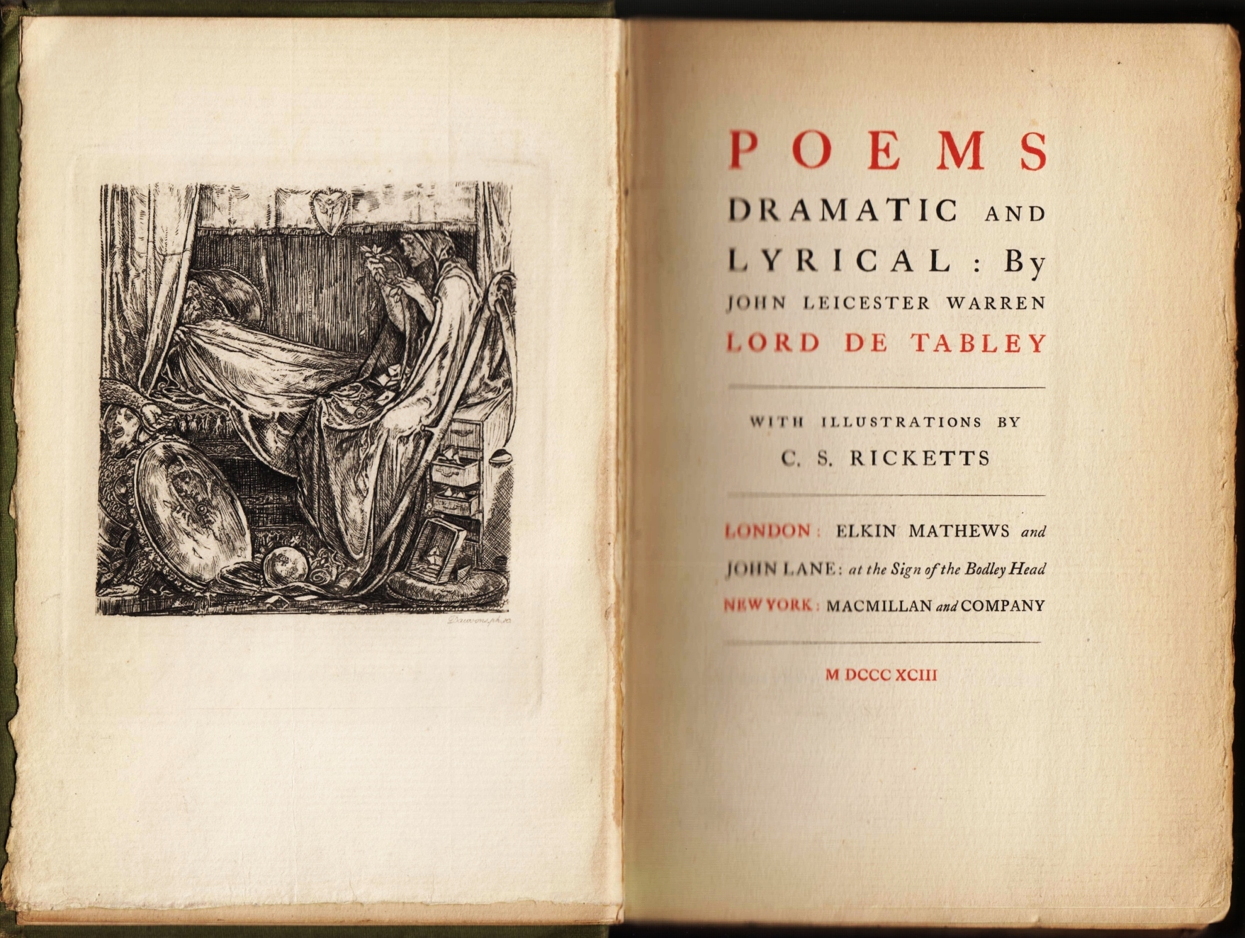 * Five illustrations by Charles Ricketts and a bookplate for John Leicester Warren, Lord De Tabley, by Charles Bell Scott.