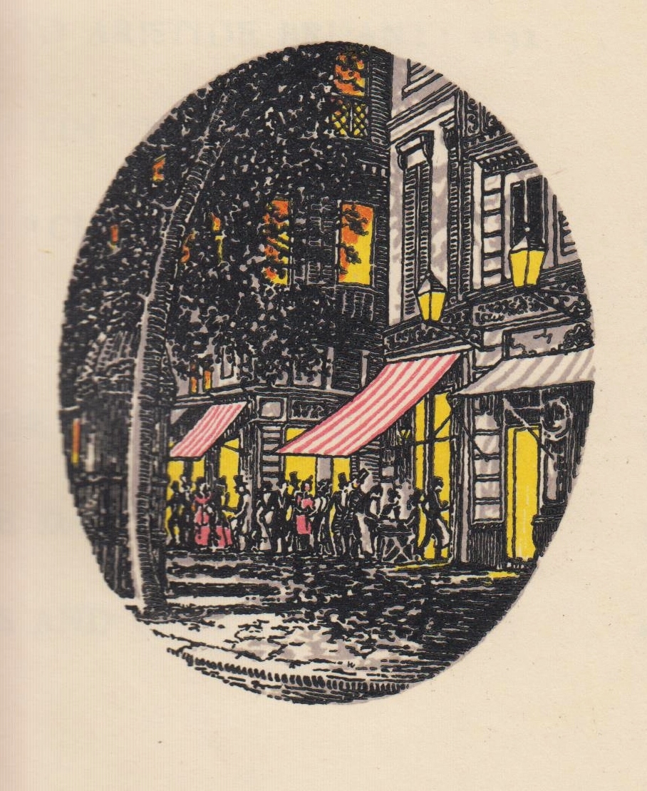 49. SYMONS, Arthur Parisian Nights. (Signed by Symons, Payne and Beaumont). London, The Beaumont Press, 1926. Original vellum-backed boards, cheerfully decorated by Wyndham Payne. (8), 50 p. Vignette on title page by Payne. Printed in 400 numbered copies. 1st edition. Fine condition.