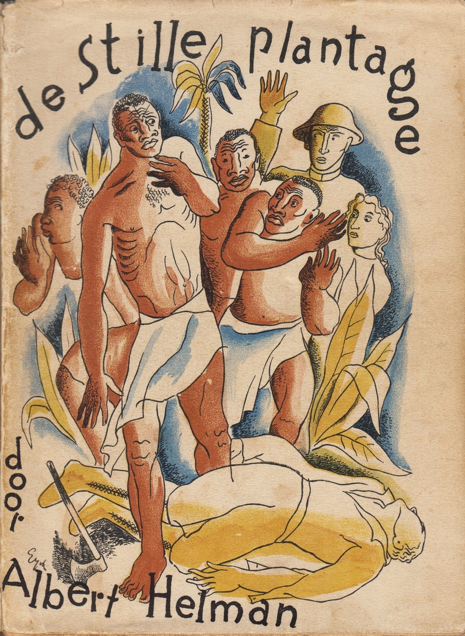 16. HELMAN, Albert De stille plantage. (Met fraai omslag van Charles Eyck). Rotterdam, Nijgh & Van Ditmar, 1931. Ingenaaid. 254 p. 1e druk. Omslag heeft lichte ouderdomssporen. Buitenste bladen boekblok wat verbruind.