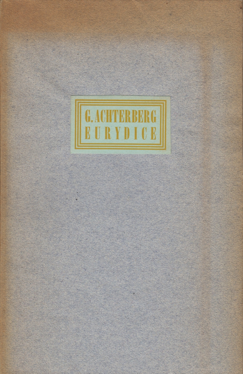 1. ACHTERBERG, Gerrit Eurydice. [Utrecht, Het Spectrum], 1944. Ingenaaid. 36 p. Niet afgesneden. Gedrukt in een oplage van 275 genummerde exemplaren. 1e druk. Omslag verkleurd.
