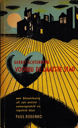 2. ACHTERBERG, Gerrit Voorbij de laatste stad. Een bloemlezing uit het gehele oeuvre van Gerrit Achterberg. Samengesteld en ingeleid door Paul Rodenko. Den Haag/ Antwerpen, Daamen/ De Sikkel, 1955. Garenloos [omslagontwerp H. Berserik]. 180 p. 1e druk. Omslag wat beschadigd. Op de binnenkant van het achteromslag zijn wat paginanummers genoteerd.