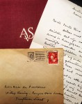 43. (SCHENDEL, Arthur van) Handgeschreven brief aan ‘Beste Tante Bine en Oom Rud’. 20,9 x 13,5 cm. Eén blad. Recto en verso. Gesigneerd ‘steeds Uw/ Sjeu’ en gedateerd ‘Amsterdam, 13 september 1946’. 17 regels tekst. Met originele envelop, poststempel van 13 IX 1946.