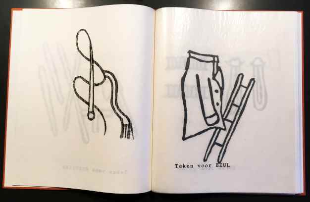 * Teksten, soms leuzen van Wittenberns: ‘wit zien zwart kijken groentje’/ ‘blauwe maandag rood staan’. Origineel kunstenaarsboek, kennelijk een unicum. Een kunstwerk waar veel aan te beleven is!