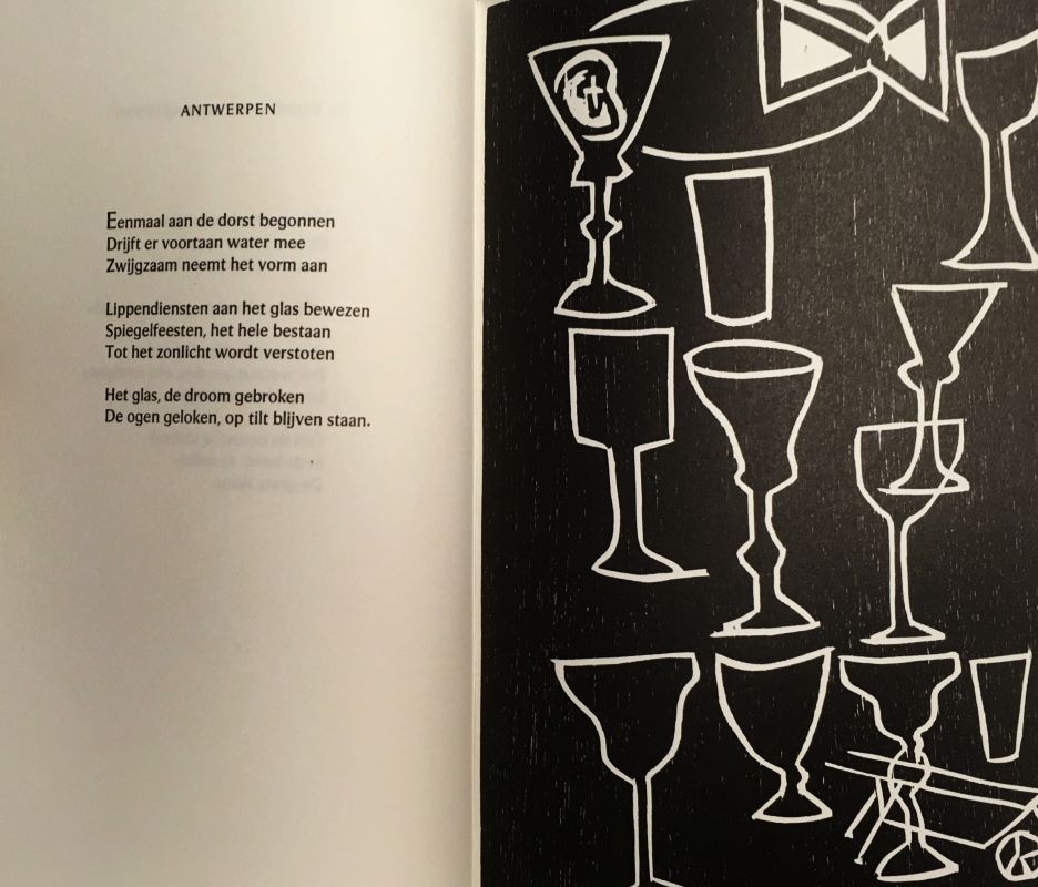 * Onder het colofon gesigneerd door drukker, dichter en kunstenaar. De drie bladvullende houtsneden van Teeken zijn in zwart gedrukt.