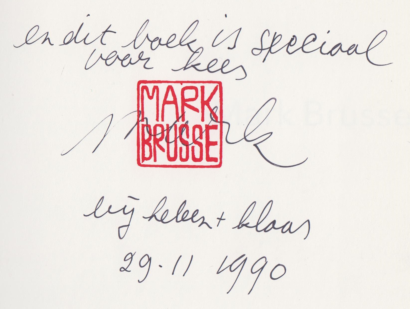 14. BRUSSE, Mark Mark Brusse. (Met opdracht van de kunstenaar). Apeldoorn/ Parijs/ Utrecht/ Antwerpen, Van Reekum Museum/ Institut Néerlandais/ Veen/ Reflex, 1990. Ingenaaid met omslag. 144 p. Geïllustreerd in kleur en zwart-wit. 1e druk.