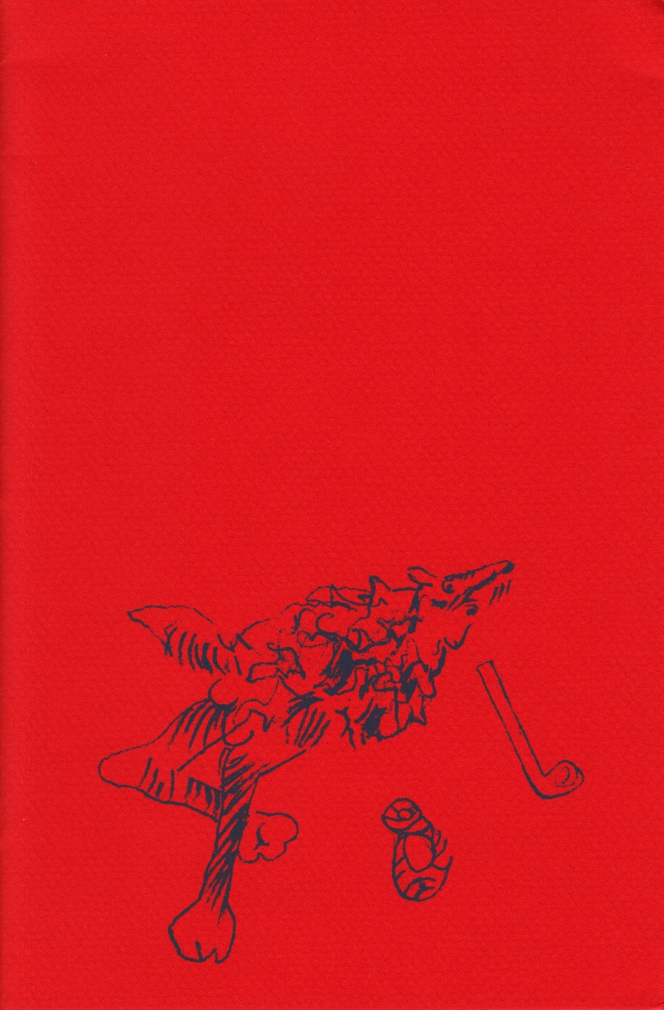 * Een weerbarstig kunstenaarsboekje met platten van fluweel en schuurpapier, met twee titels en gedichten die elkaar in het midden ontmoeten – in een met een metalen bisschopsstafje versloten tasje, zodat het schuurpapier uw andere boeken niet bijt. Vormgeving van Lidia Hendriks onder de naam Hendrickxsz (sic).