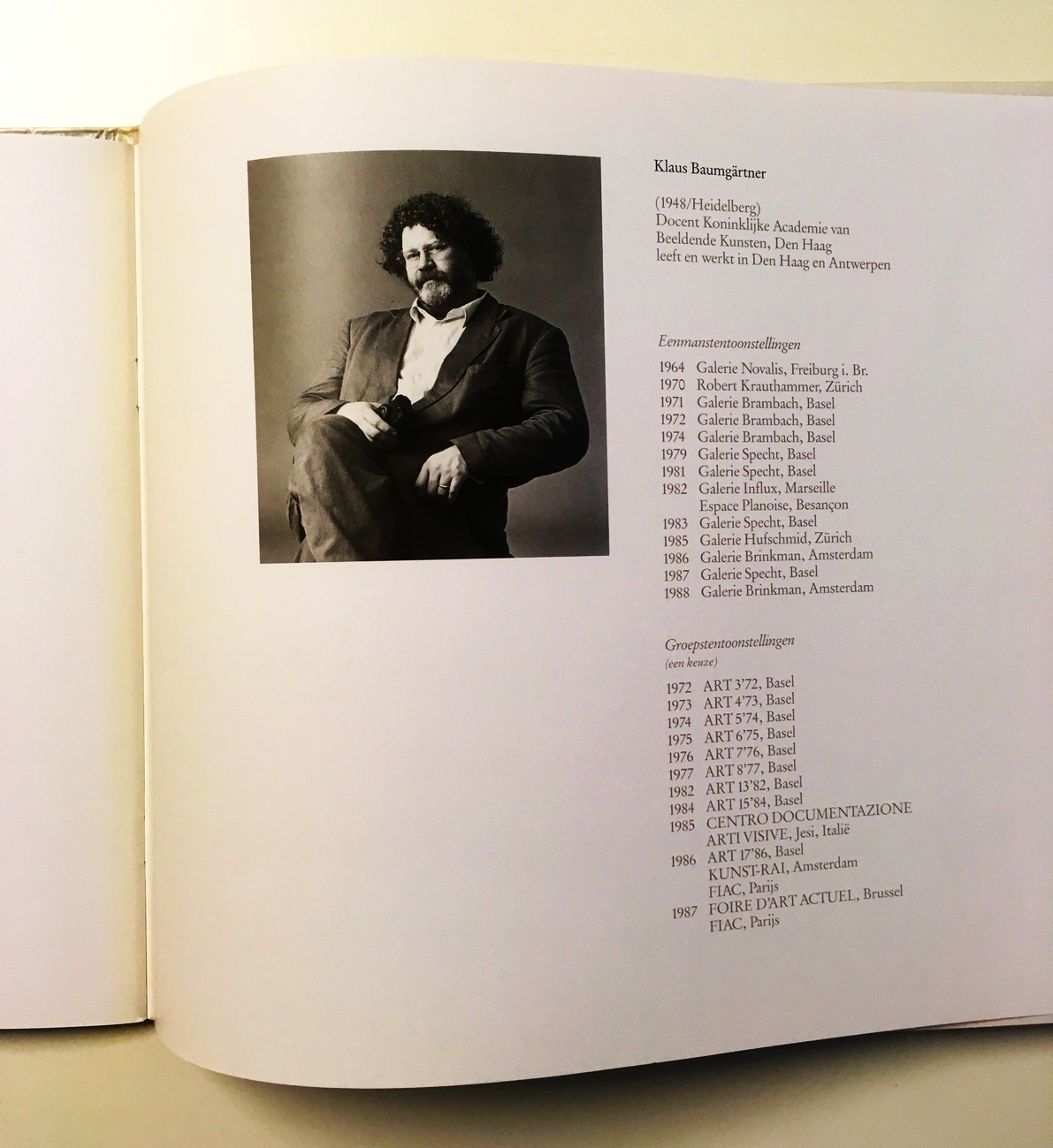 2. BAUMGÄRTNER, Klaus Foto’s. Amsterdam, Editions Vincent Steinmetz, 1988. Oblong 24 x 32 cm. Meerdere omslagen. 40 p. Foto’s in zwartwit en kleur met inleiding in Engels en Nederlands van de New Yorkse galeriehouder Peter Blum. 1e druk.