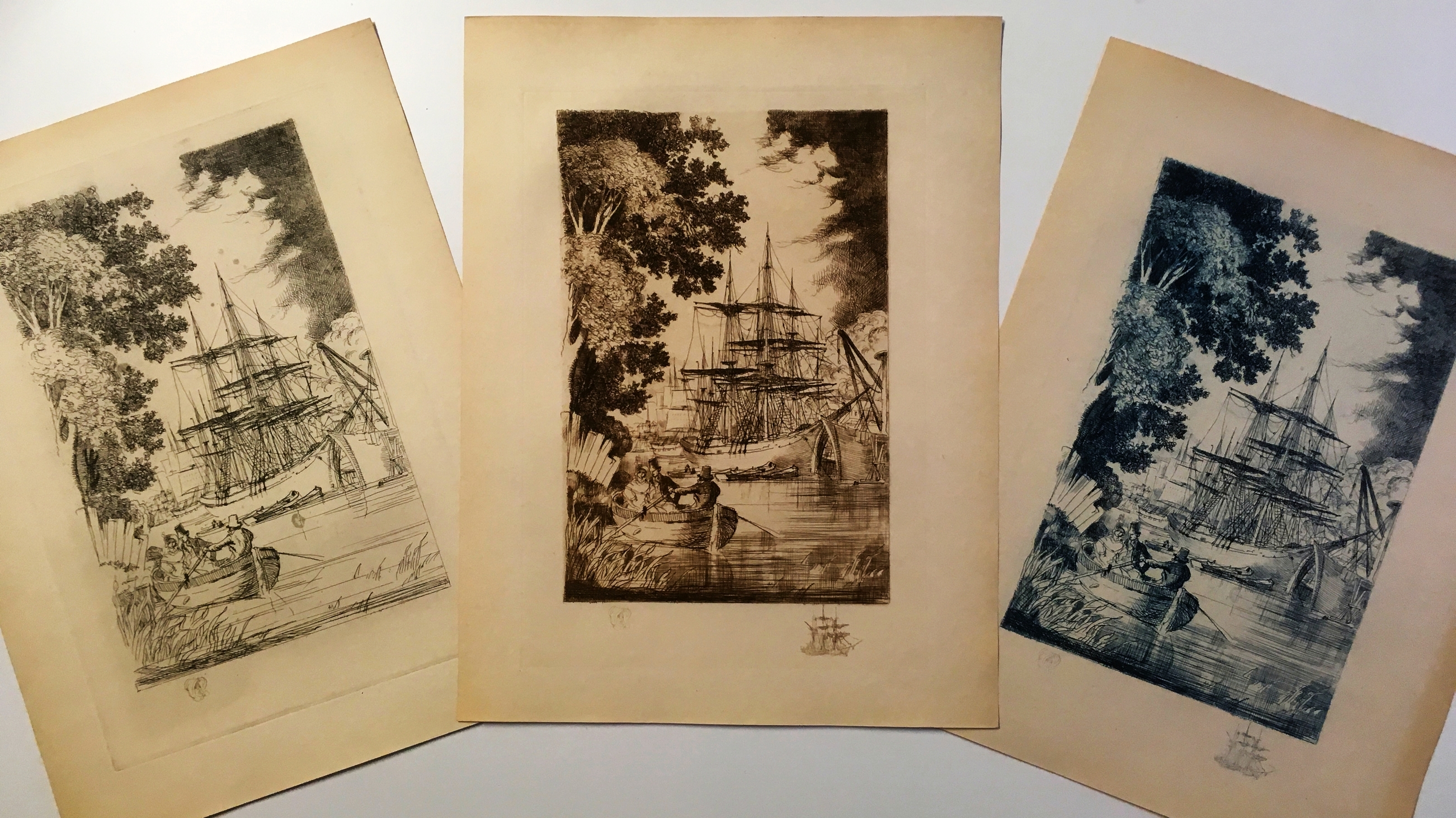 * Dit is een van de 50 exemplaren (genummerd 75-125) gedrukt op Keizerlijk Japans papier, met bijgevoegd een suite van de 25 etsen in drievoud: één afgedrukt in blauw en één in bruin, beide met toegevoegde illustraties in de platen, één in zwart met de ets in definitieve staat, maar zonder de arceringen en de fraaie toon die de in het boek opgenomen etsen kregen. Compleet, dus met in totaal 100 originele etsen. In alle opzichten buitengewoon: mooi, groot en gevarieerd.