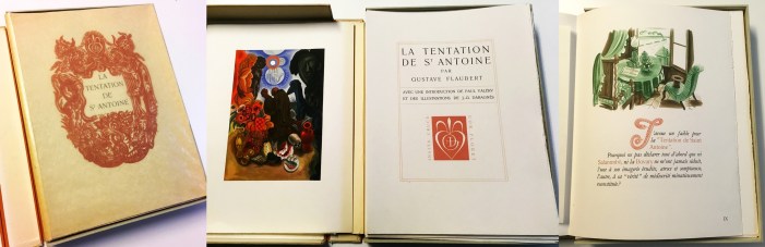 5. FLAUBERT, Gustave La Tentation de St Antoine. Avec une introduction de Paul Valéry et des illustrations de J.-G. Daragnès. [Paris], Imprimerie Daragnès, 1942. 33 x 24 cm. Origineel omslag. In gevouwen bladen, niet gebonden, zoals uitgegeven. In originele doos. (28), 228 p. Niet afgesneden. Illustraties in kleuren en vignetten van Daragnès. Gedrukt in roodbruin en zwart op Vélin de Rives in 1480 genummerde exemplaren. Doos op de rug gebarsten, verder in zeer goede conditie.