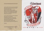 7. BUKOWSKI, Charles – Martin BRIL Herrie & Hartstocht. Sound & Passion. Vertaling Susan Janssen. Amsterdam/ Boedapest/ Invervar, Bandini, (2003). Ingenaaid (omslagtekening Peter Pontiac). 42 (= 40) p. Gezet uit de Diotima en gedrukt door De Raddraaier in een oplage van 376 genummerde of gealfabetiseerde exemplaren. 1e druk.