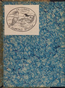 * Exemplaar uit de bibliotheek van Raymond Brulez, met zijn handtekening en ‘1912’ op de Franse titel en op de binnenzijde van het voorplat voorzien van zijn fraaie, door Edgar Tytgat in 1950 ontworpen exlibris. Bovendien met her en der wat potloodaantekeningen van Brulez (en twee in balpen).