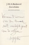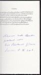 * Bevat een (met bijzonder bibberige hand) geschreven opdracht van de auteur op de titelpagina: ‘Voor meneer & mevrouw/ van der Broeck,/ met vriendelijke groet/ van de schrijver./ 1996’.