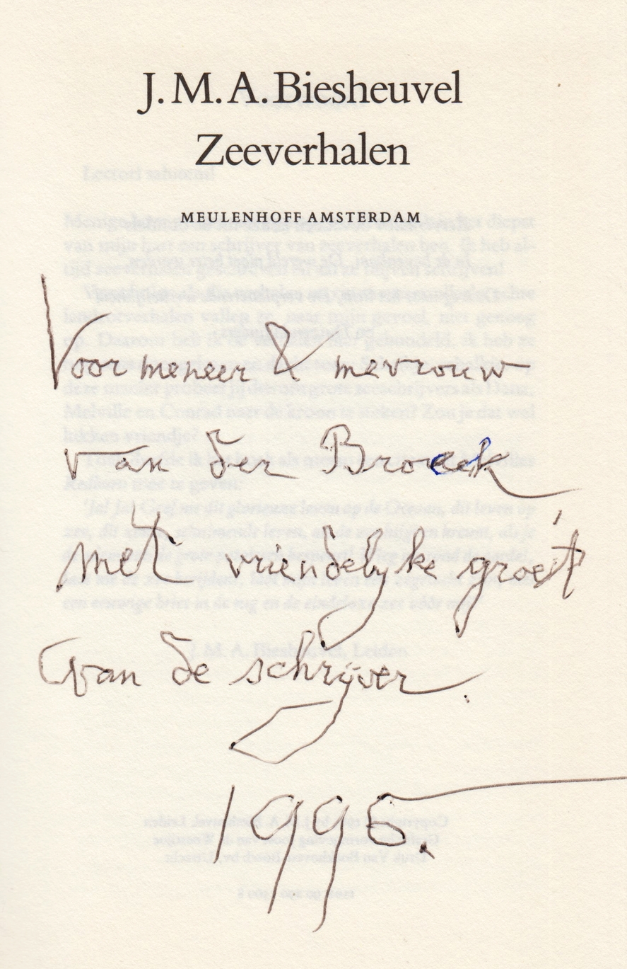 16. BIESHEUVEL, J.M.A. Zeeverhalen. Amsterdam, Meulenhoff, (1985). Karton. 232 p. 1e druk. Gaatje in rug.