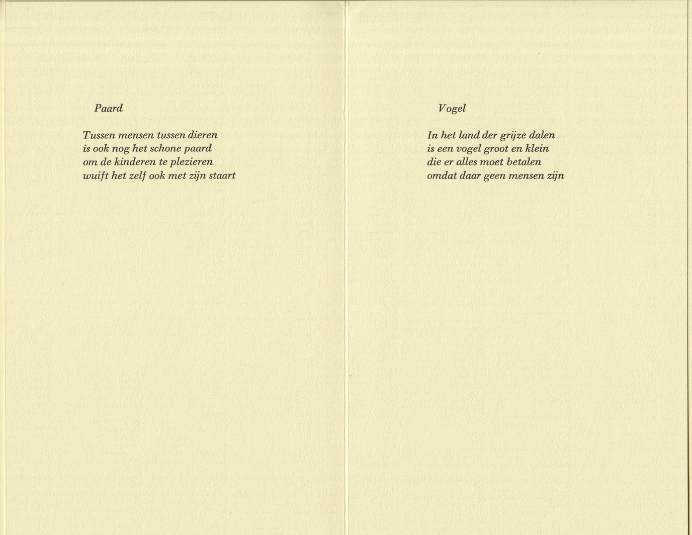 8. BIESHEUVEL, J.M.A. Het gedicht. [Woubrugge], Avalon Pers, z.j. Cahiersteek. (4) p. Gedrukt in een oplage van 85 exemplaren.