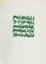 * ‘Dit gedicht is door de dichter op bestelling gedrukt, en gesigneerd, ter Boekenmarkt RAI in de stand van Querido op 18 oktober 1968’. Onder het gedicht is het blad, in blauwpaarse viltstift, inderdaad voluit gesigneerd.