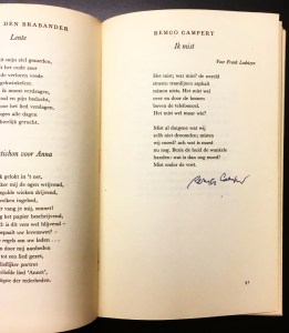 * Exemplaar met gesigneerde opdracht van de dichter onder het colofon: ‘voor Ger Boonekamp/ Remco Campert/ Maastricht/ 15.10.1994’. Mooie typografie van Karel F. Treebus. Zwarte Reeks 25.