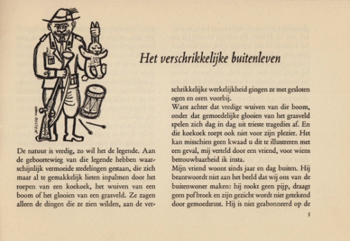 * Belangrijke bloemlezing voor het Duitse taalgebied met gedichten van Andreus, Campert (‘Kennst du den Jungen, der/ Marihuana raucht?’), Elburg, Kouwenaar, Lodeizen, Lucebert en Schierbeek. De tekeningen van Appel zijn eerder gereproduceerd in Het bloed stroomt door (1954). Slagter 59.