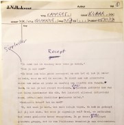 18. CAMPERT, Remco Recept. Oorspronkelijk typoscript. 1986. Twee bladen. 29,6 x 21,0 cm. Geplakt op kopijbladen van de Volkskrant. Met éen correctie in potlood door Campert en een tiental doorhalingen en correcties in balpen door een redacteur.