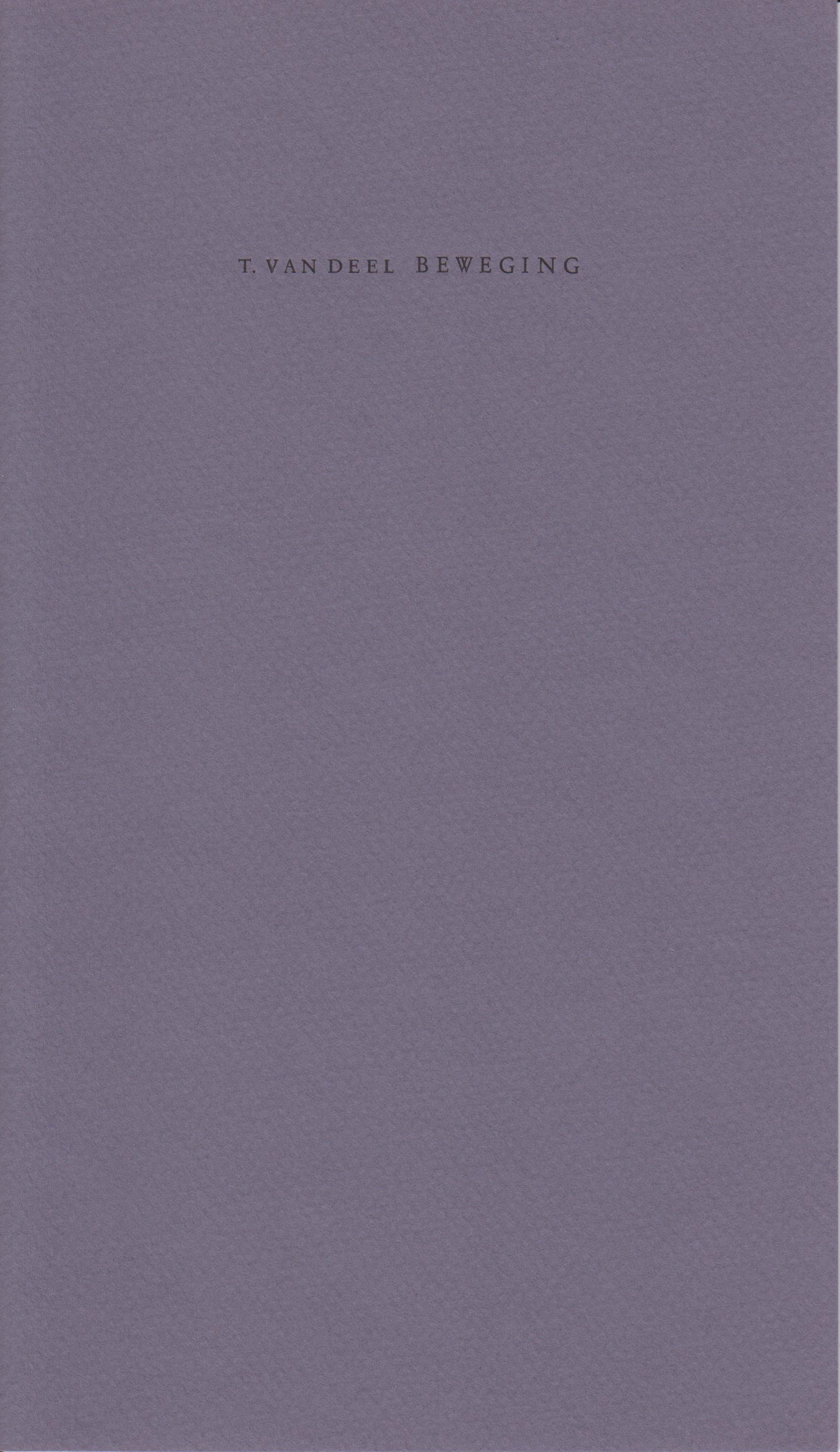 1. DEEL, T. van Beweging. (Terhorst, Ser Prop, 1996). Vouwblad in omslag. Met de hand gezet uit de Romanée en gedrukt in blauw en zwart op Zerkall-Bütten in een oplage van 125 exemplaren. 1e druk.