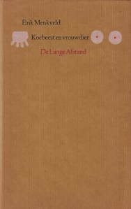 16. MENKVELD, Erik Koebeest en vrouwdier. (Met een linoleumsnede door Peter Yvon de Vries). Zutphen, De Lange Afstand, 1995. Halflinnen met stofomslag. 24 p. Met de hand gezet uit de Baskerville en de Lutetia door Peter Yvon de Vries en gedrukt op Zerkall-Bütten in een oplage van 50 door de dichter gesigneerde exemplaren. 1e druk.